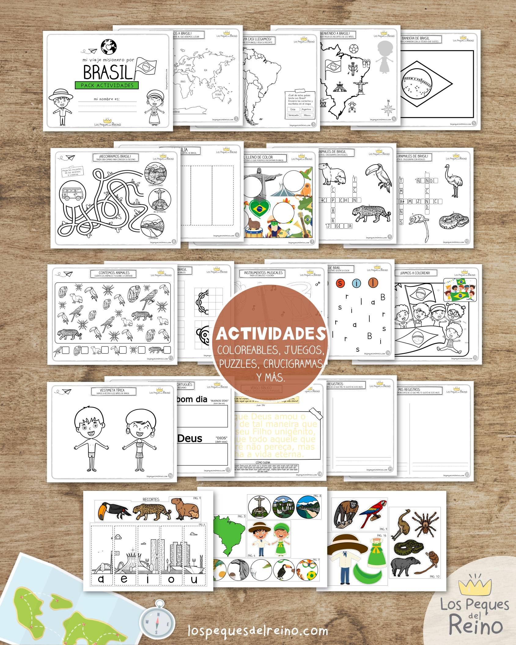 Para que tus peques se sumerjan en un viaje lleno de aprendizaje y diversión por Brasil, hemos creado este súper pack de recursos para disfrutar juntos. A través de él, podrán conocer animales maravillosos y paisajes increíbles, descubriendo la hermosa creación de Dios y cada uno de sus detalles.