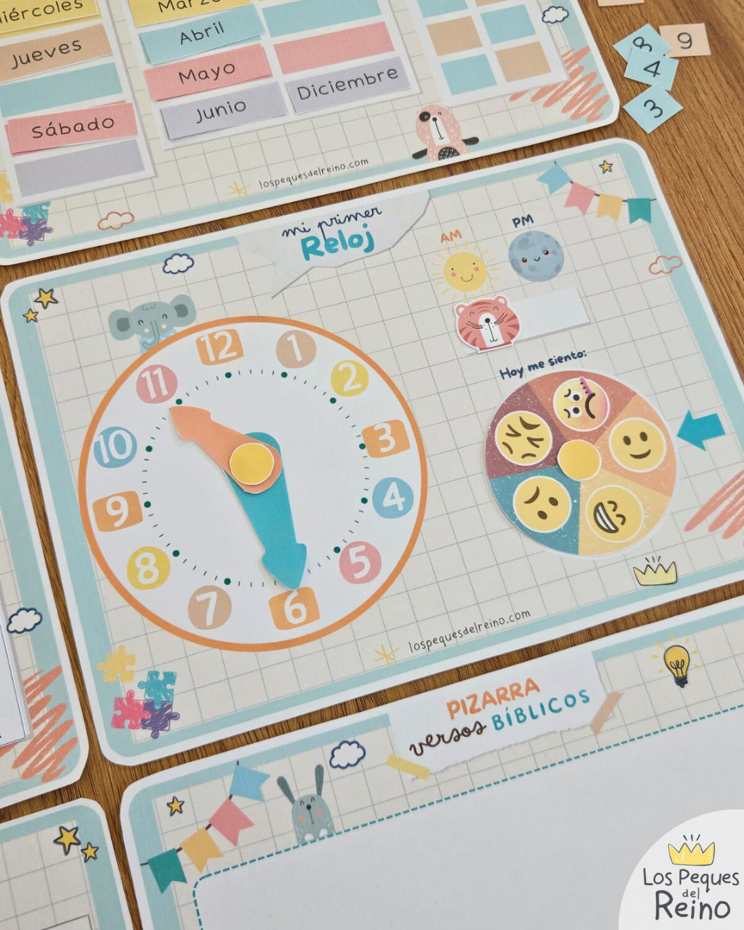 Además.. ¡Este año viene incluído un tablero de Reloj didáctico! perfecto para aprender a ver la hora de forma divertida. Este tablero Reloj cuenta con un modo para identificar el horario AM. y PM. y una ruleta de emociones para que los niños prendan seleccionar como se sienten cada día, o varios momentos de un mismo día.